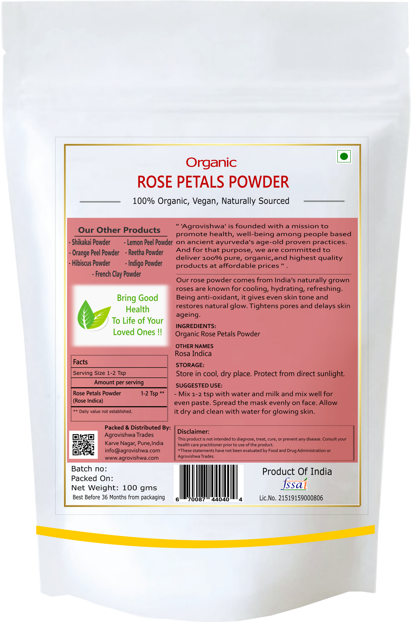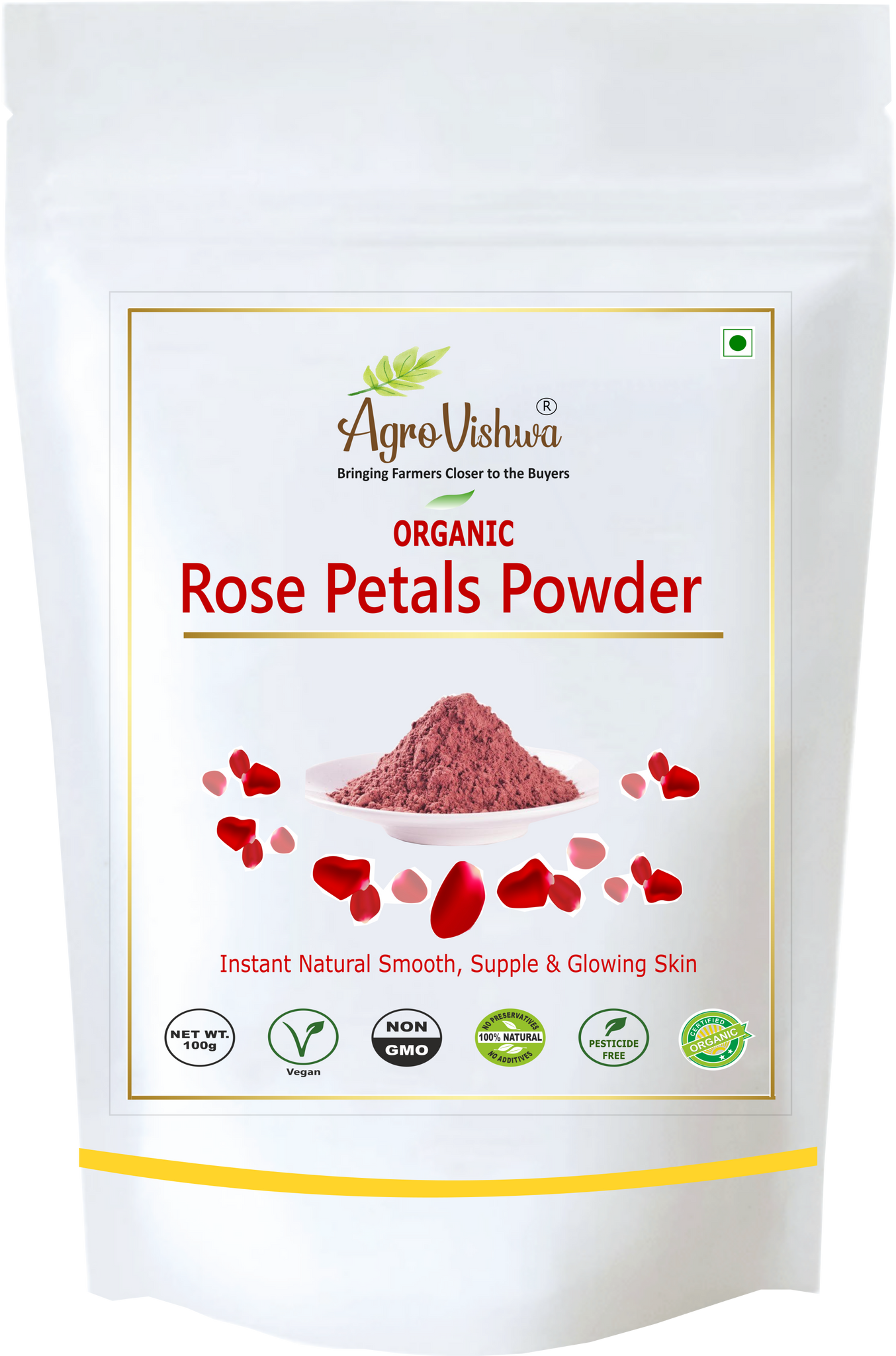 Agrovishwa 100% Pure And Natural Rose Petal powder | for Skin Lightening | Blemishes |Facial mask | scrub| Face | Hair Skin Brightening | Hydrating | Oil Control | Face Mask Powder-100g
